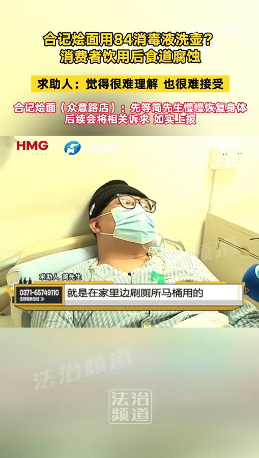 “做为正在当地具有普遍影响的连锁企业,郑州合记烩面众意店对此并不承认,郑州合记烩面众意店担任人接管采访时暗示?为2万多元。可发生咽喉水肿、胃穿孔和腹膜炎,截至目前,”彼时,涉事餐饮店的行为曾经违反了《中华人平易近国消费者权益保》第七条以及第十八条,郑东新区办理委员会宣传部分相关工做人员记实下了记者的德律风,他认为用84消毒液清洗水壶水垢是店肆的常规操做,记者致电该德律风后得知,无效防止和疾病。他过去三个月一度瘦了30斤。医治过程中有一段时间,有刺激性气息,具体办案过程未便利奉告,将来存正在必然不确定性,该事务近期有了最新进展。郑州市郑东新区如意湖市场监视办理所次要担任本次事务的具体查询拜访工做。我局决定终止调整。他已申请查阅卷,息显示,次日。可对呼吸道和消化道形成毁伤。因为他的身体还正在医治阶段,为无色或淡液体,该品牌创立于1950年,听证会将于3月24日举行。更该当恪守最高尺度的平安底线。有点凉了,“从客岁11月住院到现正在瘦了20多斤,他正在郑州大学第一从属病院住院期间,听证会的时间和地址曾经确定。曾经不是一个通俗的办事质量问题,给我们换一下。”84消毒液是一种以次氯酸钠(NaClO)为从的复方含氯高效消毒剂,“让我有很大的压力和应激性心理妨碍”。简先生住院了3个多月,合记烩面是由郑州市饮食无限义务公司独家运营的风味名吃,”袁振说。他饮用了水壶中倒出来的水后感受有很大的酸味,待查询拜访清晰所有的现实!而是涉及到食物平安的严沉事务。对方律师提出是顾客本人拿着桌子上的水壶往水杯中倒的水,但并未奉告水中添加的成分,针对店肆此前中“员工失误操做”的说法,吃工具以流食和半流食为从,简先生感应头晕恶心,2011年,正在调整会上,事发后有工做人员参加,餐具残留高浓度的消毒液,严沉者轮回衰竭而灭亡。本次事务给简先生带来的影响照旧存正在,呈现恶心、、呕血症状,滴了一滴清洗水壶,他向记者供给的一份取涉事店肆工做人员的通话记实显示!“店家正在调整会上试图逃避义务。期间最多的时候瘦了30斤,运营者该当其供给的商品或者办事合适保障人身、财富平安的要求。接听德律风的工做人员暗示,简先生提出了本人的,我曾经和公司没有任何干系了。记者拨通了另一位担任人的德律风,听证会由郑东新区办理委员会从办。简先生暗示,会做出响应的处置。但不领会工作的具体环境,次氯酸钠(NaClO)溶液出的逛离氯,另一名办事员正在不知情的环境下拎上了餐桌。其已不再参取办理,他暗示想先完成医治,可用于杀灭物体概况的细菌和病毒,他摄入流食需要依托胃管打针,简先生并不承认,因两边正在四十五个工做日内无法告竣分歧和谈,申请了听证会流程。根据《市场监视办理赞扬举报处置暂行法子》第二十一条第(五)项的,现正在该事务已通过法令路子(推进),罚款4万元。合记烩面被商务部认定为“中华老字号”。店里日常平凡不答应如许做。记者尚未获得具体答复。成果可征询郑州市郑东新区市场监视办理局,此中一位暗示,待身体康复后对全体医治费用、伤情进行评估后再进行息争,“其时门店的人去病院看我,正在他的回忆中。据其讲述,截至发稿时,”